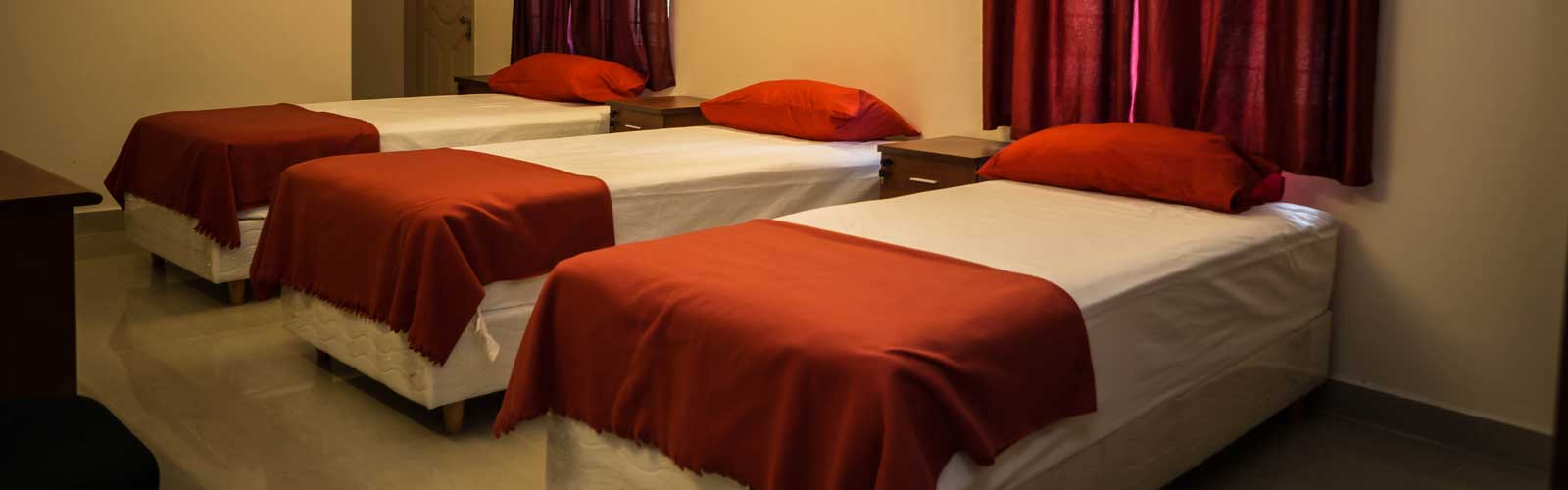 Triple Bed-Room Hostel : In our triple bed- room facility we don’t believe three is a crowd, so if you want a share the place with your friends we have just what you need. Even for the triple sharing room we have the same five star facilities accomodation.